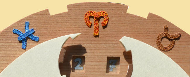 Particolare dei simboli zodiacali a merletto dei Pesci dell’ Ariete e del Toro.