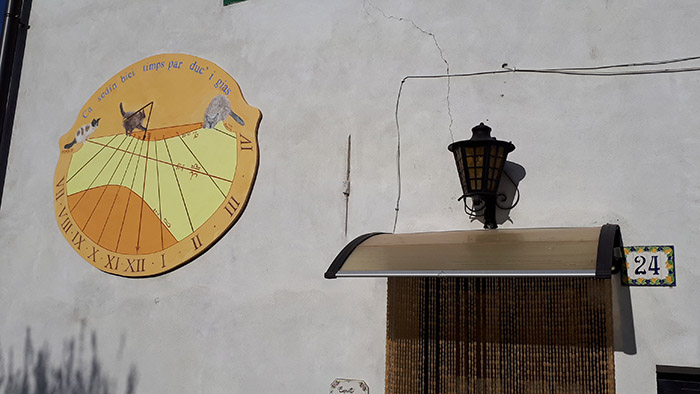 Com’era in uso in tipiche case del passato l’orologio solare è stato collocato a fianco della porta d’entrata della casa, ha un’armoniosa forma tondeggiante.